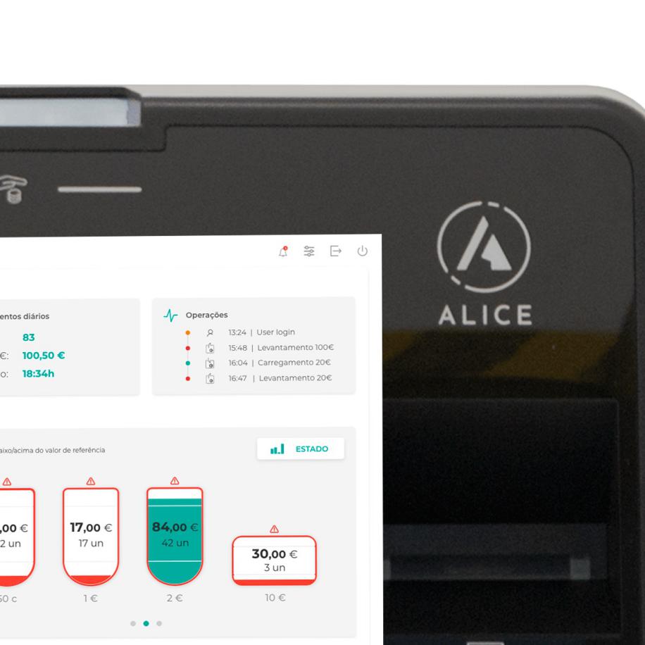 A ALICE não é uma mera solução de pagamentos automáticos. Nem é apenas um novo sistema a implementar no seu negócio. Mais do que uma máquina, é precisamente o elemento que falta na sua equipa. Cada uma das características deste sistema de pagamentos automáticos foi concebida para agilizar as transações com os seus clientes. Com a ALICE, pode contar com processos mais automatizados e muito mais simples e eficazes. E, acima de tudo, pode contar com o sentido de segurança e o tempo de que necessita para se dedicar ao que realmente pede a sua total atenção.